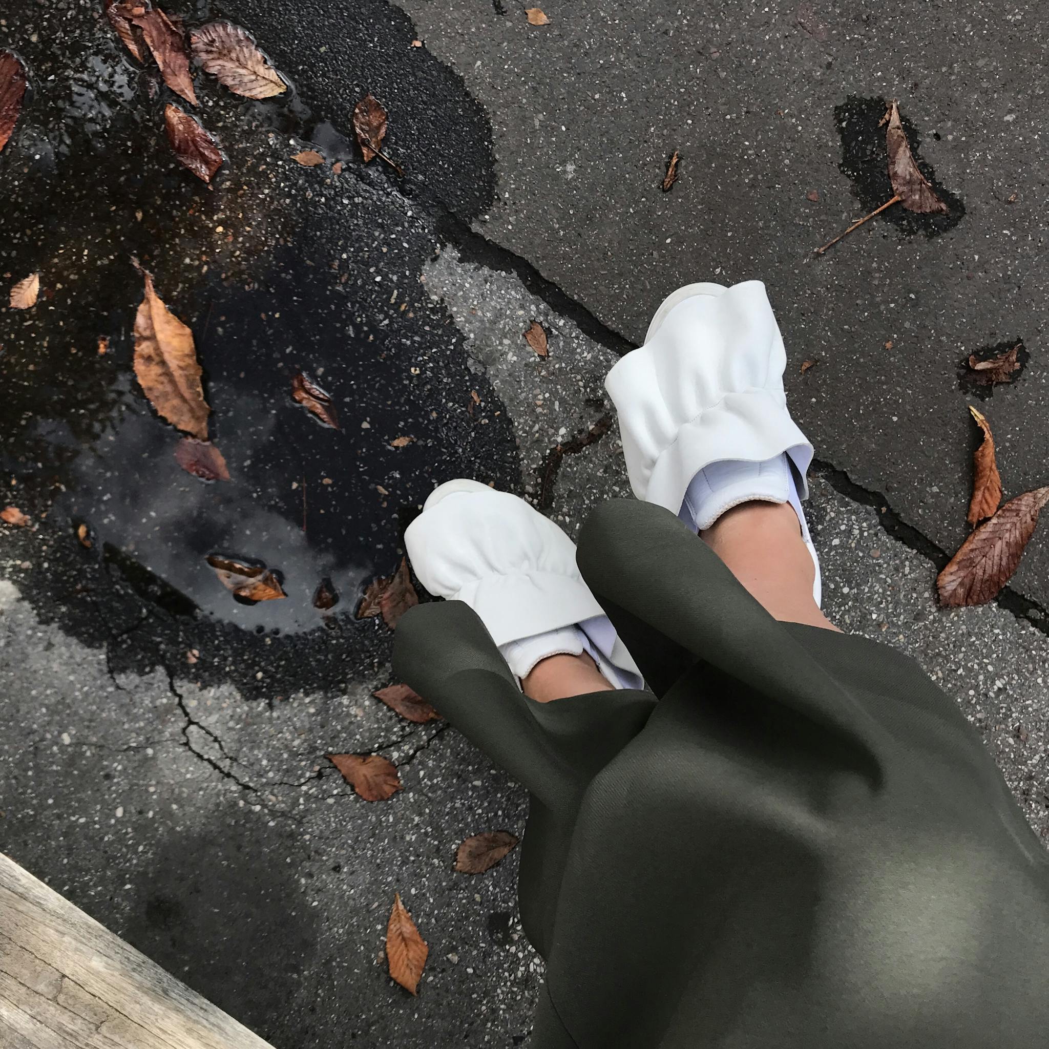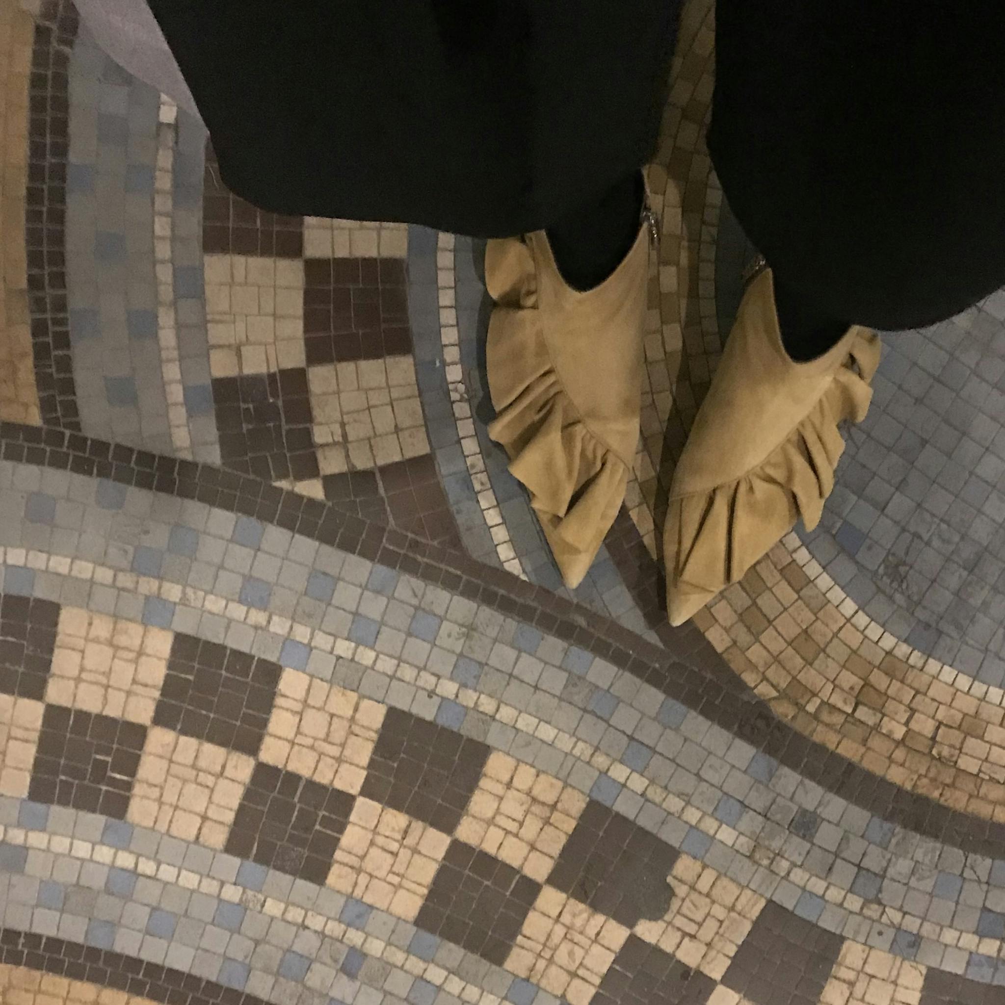My JW Anderson booties—beige suede, flat, with a pointy toe and ruffles along the side—saved my life that night. From that day on I would make it a rule to face all challenging situations in life in a pair of eye-catching shoes. Why shoes of all things, you ask? I’ll let the brilliant Miuccia Prada answer that one for me: «Craziness in a shoe is great—you can have much more freedom, you can exaggerate, and it doesn’t feel stupid. But to have too much craziness near your face, that would just feel weird.»
