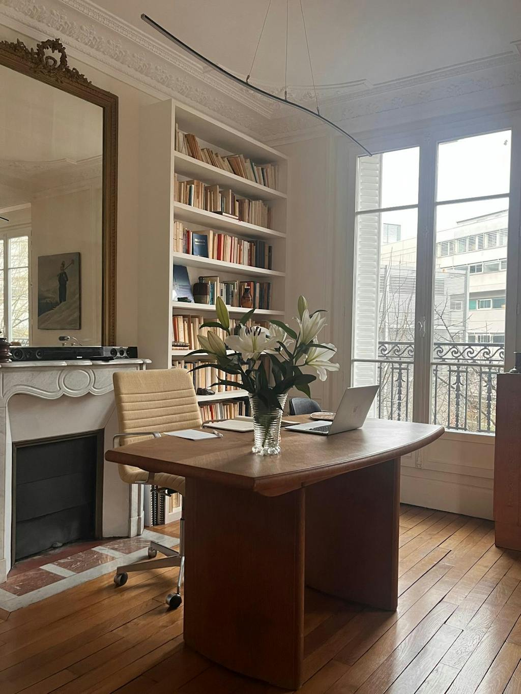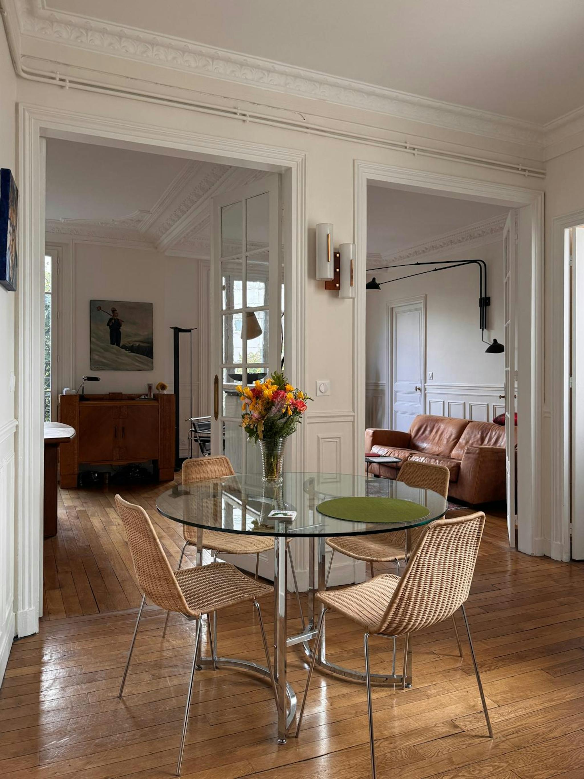 Wenn ich an einen Happy Place denke, denke ich an die Wohnung meiner Eltern im 20. Arrondissement von Paris. Sie haben sie 2017 erworben, als sie ihren Hauptwohnsitz in die Dordogne verlegten. Für uns alle war die Wohnung immer eher ein Pied-à-Terre, und seit ich vor zehn Jahren nach New York gezogen bin, nutze ich sie oft, wenn ich in Paris bin. Es ist eine kleine, typische Haussmann-Wohnung, perfekt für ein bis zwei Personen, liebevoll eingerichtet mit den Möbeln, Gegenständen und Kunstwerken, mit denen ich aufgewachsen bin. Auch wenn die Wohnung erst seit weniger als zehn Jahren zu unserer Familie gehört, vermittelt sie mir jedes Mal ein wunderbares Gefühl von Wärme und Heimat, sobald ich die Tür öffne.
