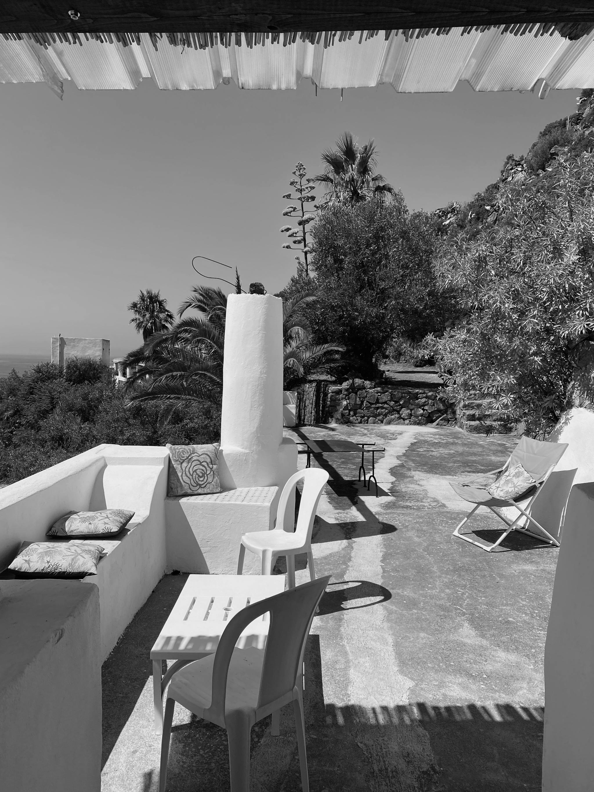 We chose an Airbnb high above Pecorini a Mare, a small apartment that was exactly as the island itself: the bare necessities. A spartanic outdoor kitchen, two bedrooms with windows facing the sea, a small bathroom so unremarkable I can’t, for the life of me, remember what it looked like. All I remember is my bed with the fan beside it, pointing right at my head. And our dining table, outside beneath a pergola. The plastic chairs on which we spent hours doing nothing of importance. We ate, we read, we sat musing. We drank wine, sometimes we played games. Our eyes, sometimes on each other, but mostly on the ocean.
