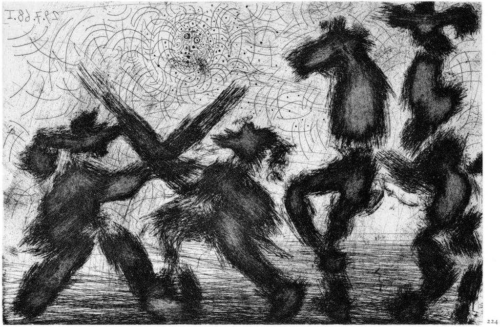 Pablo Picasso (1881–1973) était un maître graveur.Tout au long de sa vie, il a expérimenté différentes techniques,, les combinant pour satisfaire son imagination débordante, son elan créatif et les besoins expressifs de sa main rapide. Entre mars et octobre 1968, il a créé pas moins de 347 gravures qui plongent le spectateur dans un flot vibrant d'images : un défilé de performeurs, courtisanes, mousquetaires, artistes et modèles dans leurs costumes, se réjouissant de la comédie de l’existence tout en dévoilant l’humour et la mélancolie de l’artiste vieillissant. En tant que première institution de la Suisse alémanique, le Kunsthaus Zug présente 80 œuvres de la série significative 347.