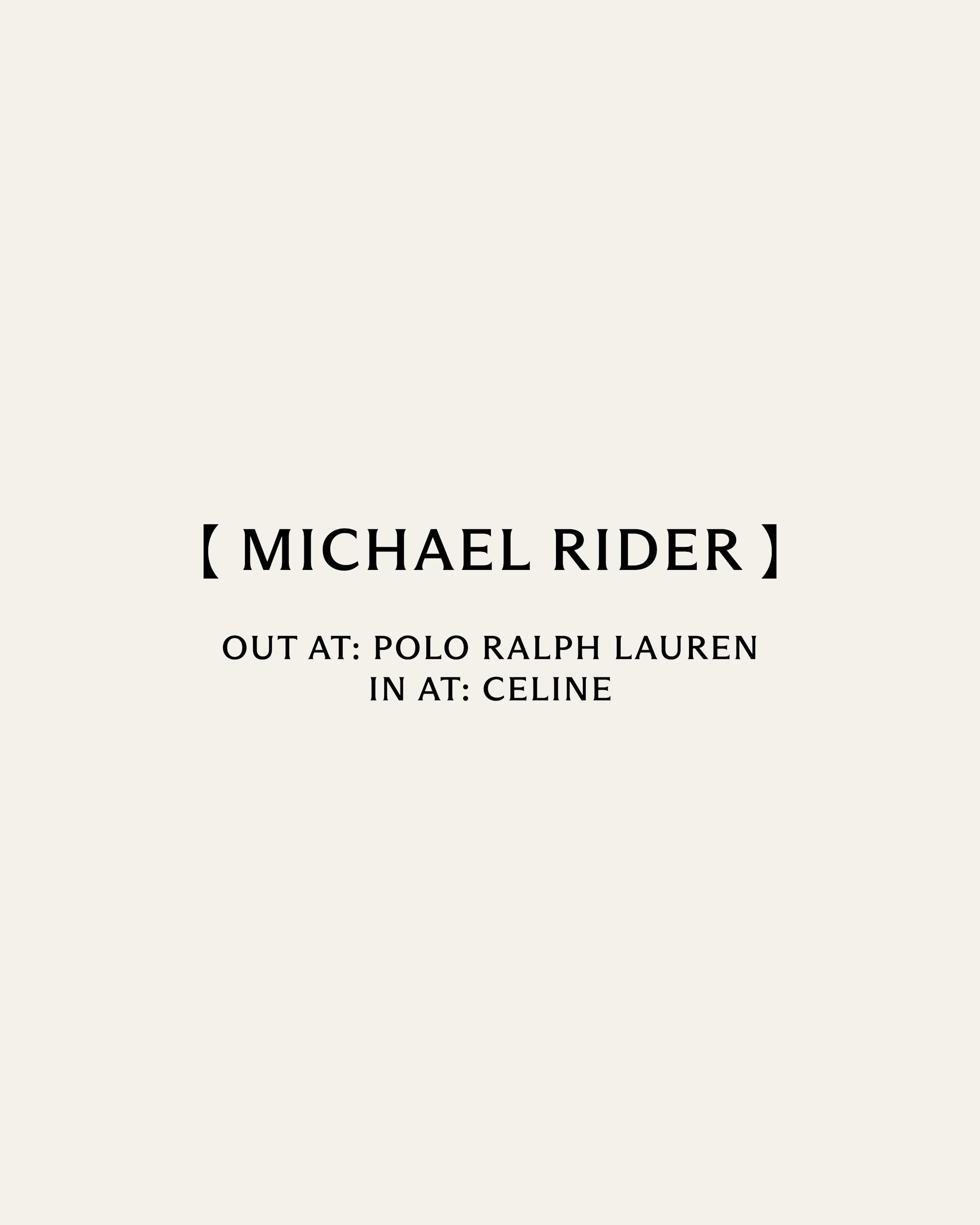 Is it Celine? Céline? Who knows now! What we do know: Washington-born Michael Rider began his career as a senior designer at Balenciaga, working under Nicolas Ghesquière before he served as the design director of ready-to-wear at Céline during Phoebe Philo's tenure. When she left, Rider moved on to Polo Ralph Lauren, where he spent the past six years blending traditional preppy styles with modern influences. And now he’s back. In October 2024, following Hedi Slimane’s departure, Celine announced Rider's appointment as the brand’s new creative director, stating that «his genuine nature and strong connection to Celine’s heritage make him a natural choice to continue to build a long-lasting success for the maison.» Michael Rider is set to unveil his first collection for Celine on July 6.