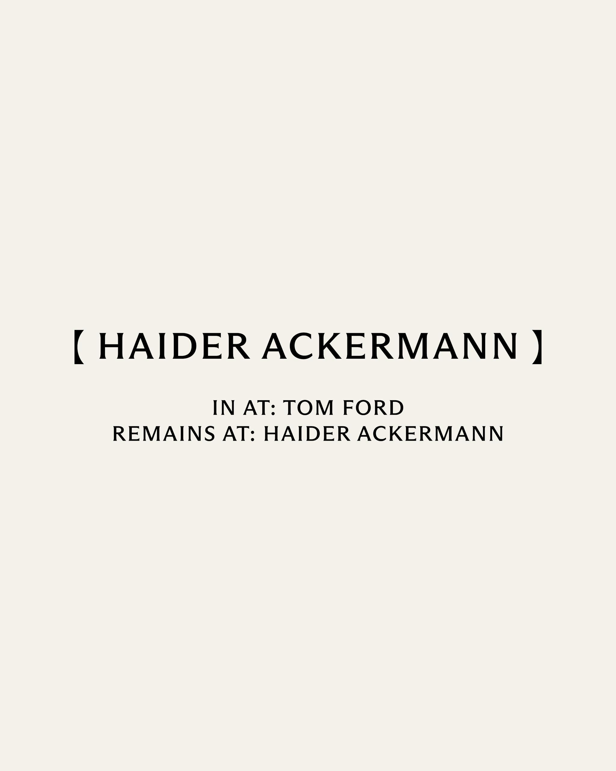After internships with John Galliano and assisting Belgian designer Wim Neels, Colombian-born Haider Ackermann launched his eponymous label in 2001: clothes that are defined by bold tailoring, rich textures, and a balance of opposites. Alongside running his own brand, Ackermann has held significant roles throughout his career, including serving as Creative Director for Berluti from 2016 to 2018 and collaborating with renowned brands like Jean Paul Gaultier and Canada Goose, where he was appointed the brand’s first-ever Creative Director in May 2024. In September 2024, then, Ackermann was appointed as the new Creative Director of Tom Ford. He has expressed his commitment to honouring Tom Ford's legacy while injecting his own unique vision into the brand, aiming to blend seduction, desire, and eccentricity with a modern elegance that bridges the house's rich heritage with contemporary sensibilities. His inaugural collection, presented in Paris on March 6th, was spectacular proof that he is doing just that.