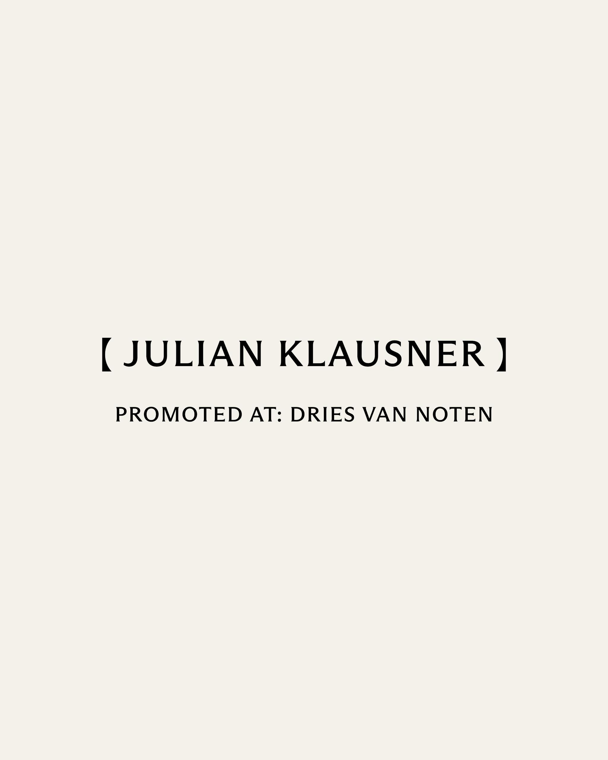 For Julian Klausner, it has always been Dries–almost always. After starting his career as a Junior Designer at Maison Margiela, he joined Dries Van Noten in August 2018, where he played a pivotal role in designing and developing the women's collections ever since. When van Noten retired in June 2024, the 33-year-old Belgian was named his successor and appointed the brand’s new Creative Director. His deep understanding of the brand and its values is said to ensure a seamless transition, though Klausner has expressed his commitment to, although honoring Dries Van Noten's legacy, introducing his own vision to the brand. His first men’s collection was unveiled in Paris last month, with his inaugural women’s runway show presented during Paris Fashion Week on March 5th, 2025. Both collections received mixed reactions but were, overall, seen as a promising start.