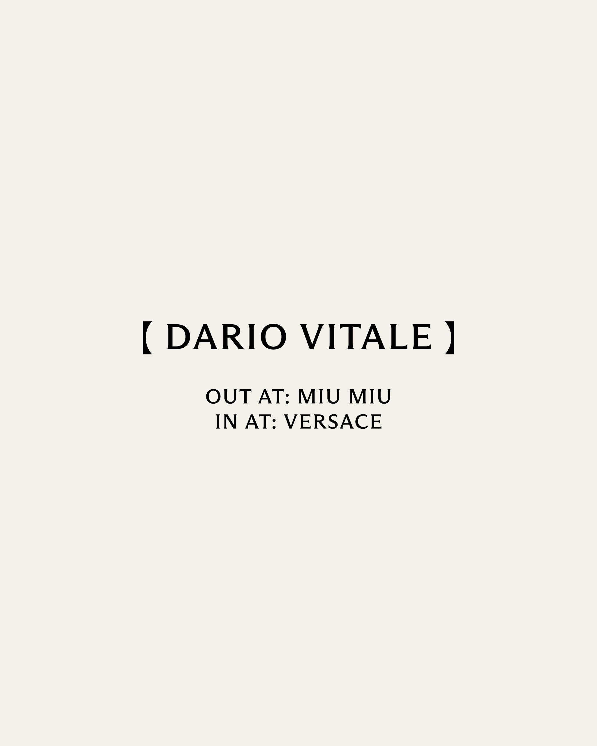 La rumeur courait depuis un moment : le 14 mars, Versace a annoncé la nomination de Dario Vitale comme nouveau Directeur Créatif. À partir du 1er avril, Vitale prendra la relève de Donatella, qui a dirigé la maison pendant près de trois décennies après la tragique disparition de son frère Gianni. Vitale semble être un excellent choix : après des passages chez Dsquared2 et Bottega Veneta sous la direction de Tomas Maier, il rejoint Miu Miu en 2010, où il gravit les échelons pour devenir Directeur du Design et de l'Image, un poste qu’il occupa jusqu’en janvier de cette année. Au cours de ses 15 ans passés chez Miu Miu, il a joué un rôle clé dans l’évolution de la direction créative de la marque et, surtout ces dernières années, dans son succès commercial. Avec une esthétique de Versace bien différente de celle de Miu Miu, la première collection de Vitale pour la maison, qui sera présentée lors de la Fashion Week de Milan en septembre, suscitera une immense attente. Autrement dit, on a hâte de voir ce qu'il va proposer.
