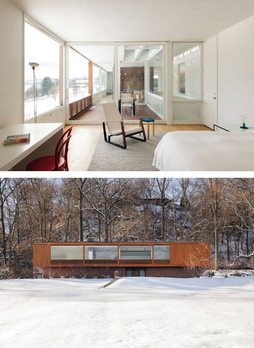 Perché au-dessus de la rivière Hudson à Newburgh avec des vues panoramiques sur la rivière et les montagnes environnantes, Wolfhouse est un parfait exemple des premières œuvres de Philip Johnson. La maison présente de grandes fenêtres du sol au plafond, un agencement ouvert et une forte connexion avec la nature. Initialement construite en 1949, la propriété a été minutieusement restaurée en 2020 à partir des plans originaux conservés à la bibliothèque d'architecture de l'université de Columbia. Elle peut accueillir jusqu'à 6 personnes dans 4 chambres et est disponible à la location, avec des tarifs à partir de 920 CHF par nuit et un séjour minimum de deux nuits. Au-delà d'être une location de vacances, le Wolfhouse sert également d'espace culturel avec des programmes tout au long de l'année.