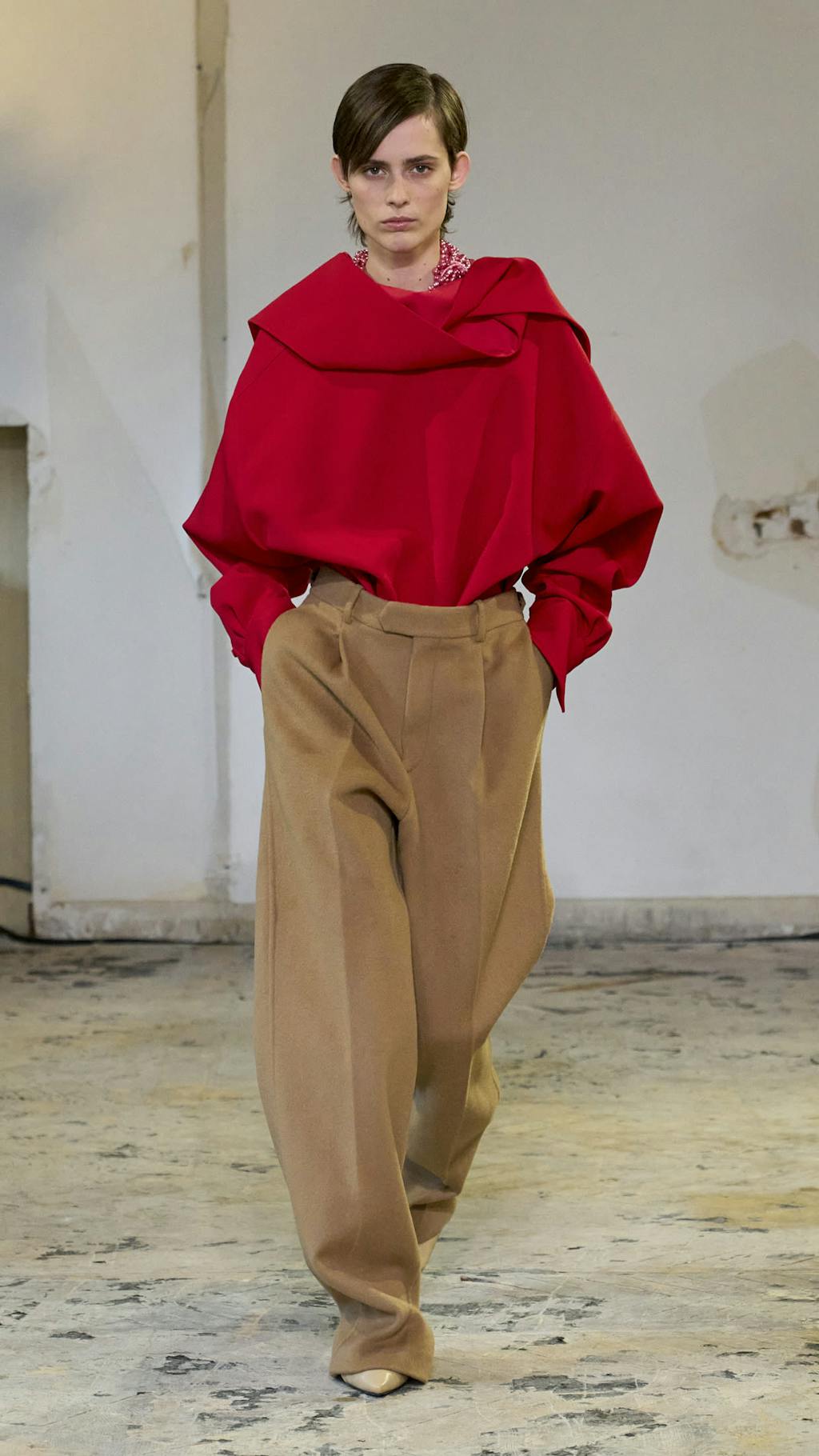 Louise Trotter's Carven is strong-shouldered blazers over sheer organza skirts, is a sculpted top over a voluminous shirt, is a pearl chain bouncing off a fuzzy lurex jacquard tunic. Her Carven is texture, is shape, is colour, is volume. Her Carven is my kind of magic.