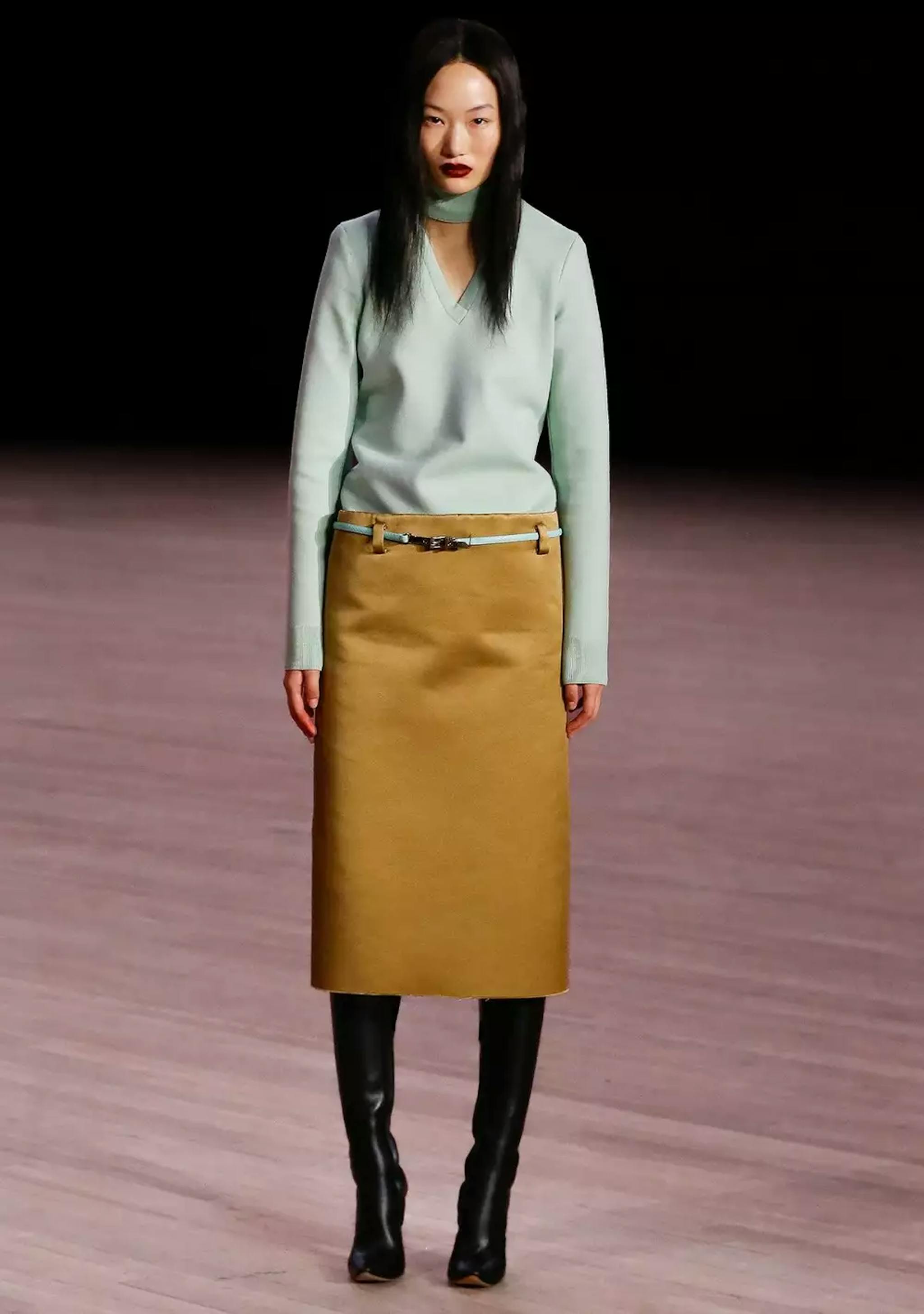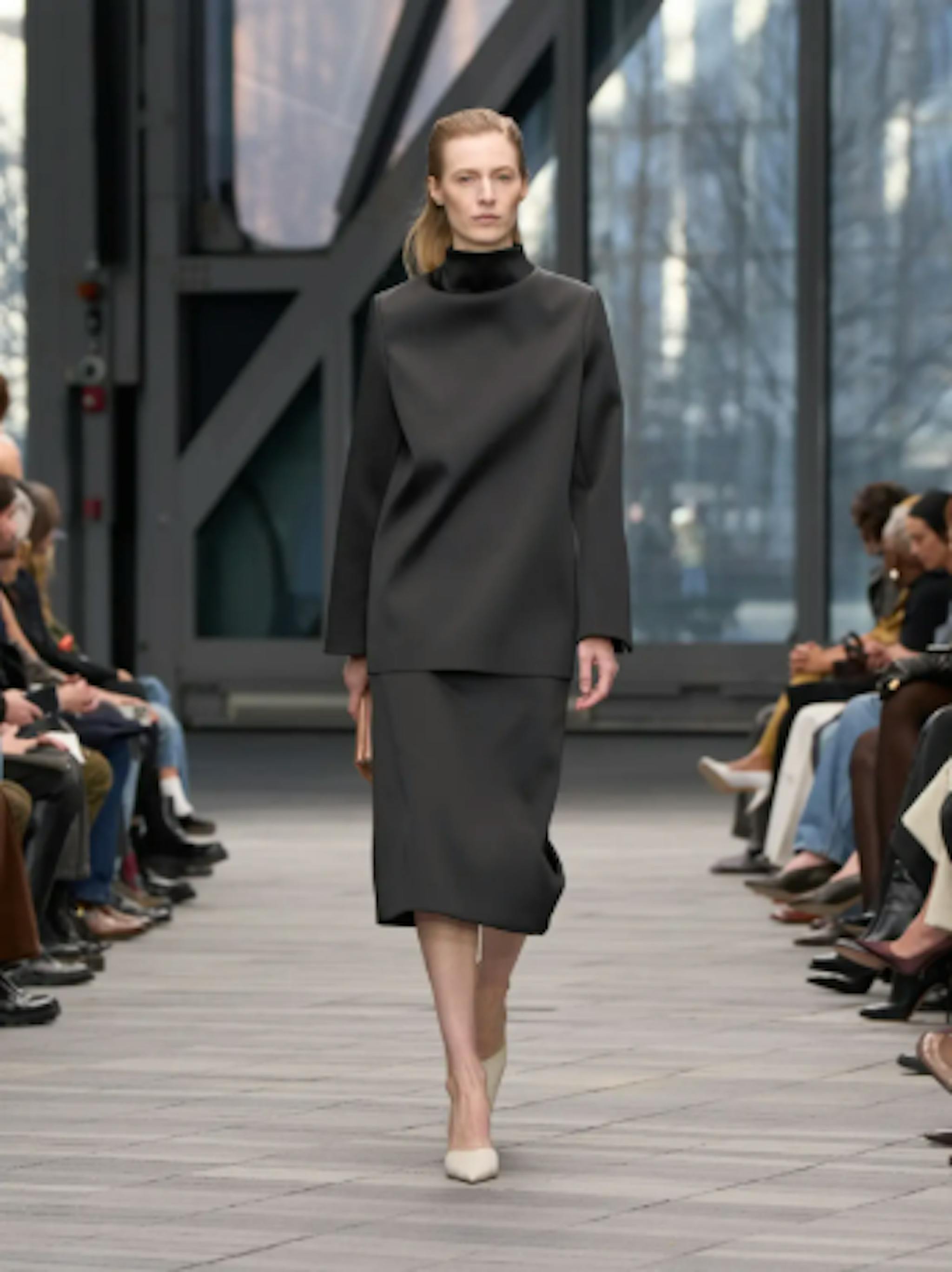 It has been exactly a year since Veronica Leoni took the helm of Calvin Klein Collection, and she appears increasingly at ease. Aiming to hark back to the house’s roots in the 1970s and early 1980s, she described her Autumn/Winter 2026 as Hedonistic Elegance. Through an interplay of varying degrees of coverage and exposure — opacity and translucency, heft and lightness — she proposed a sharp minimalism shaped by a quiet obsession with the body: sleeveless suiting, slim tailoring with peek-a-boo backs, tweed-front dresses revealing sheer backsides, trench coats so diaphanous they resembled coloured parchment. In a nod to its upcoming 50th anniversary, Leoni reintroduced and recreated the original Calvin Klein 1976 runway jean — a gesture that felt less like nostalgia than a careful calibration of the house’s enduring codes.