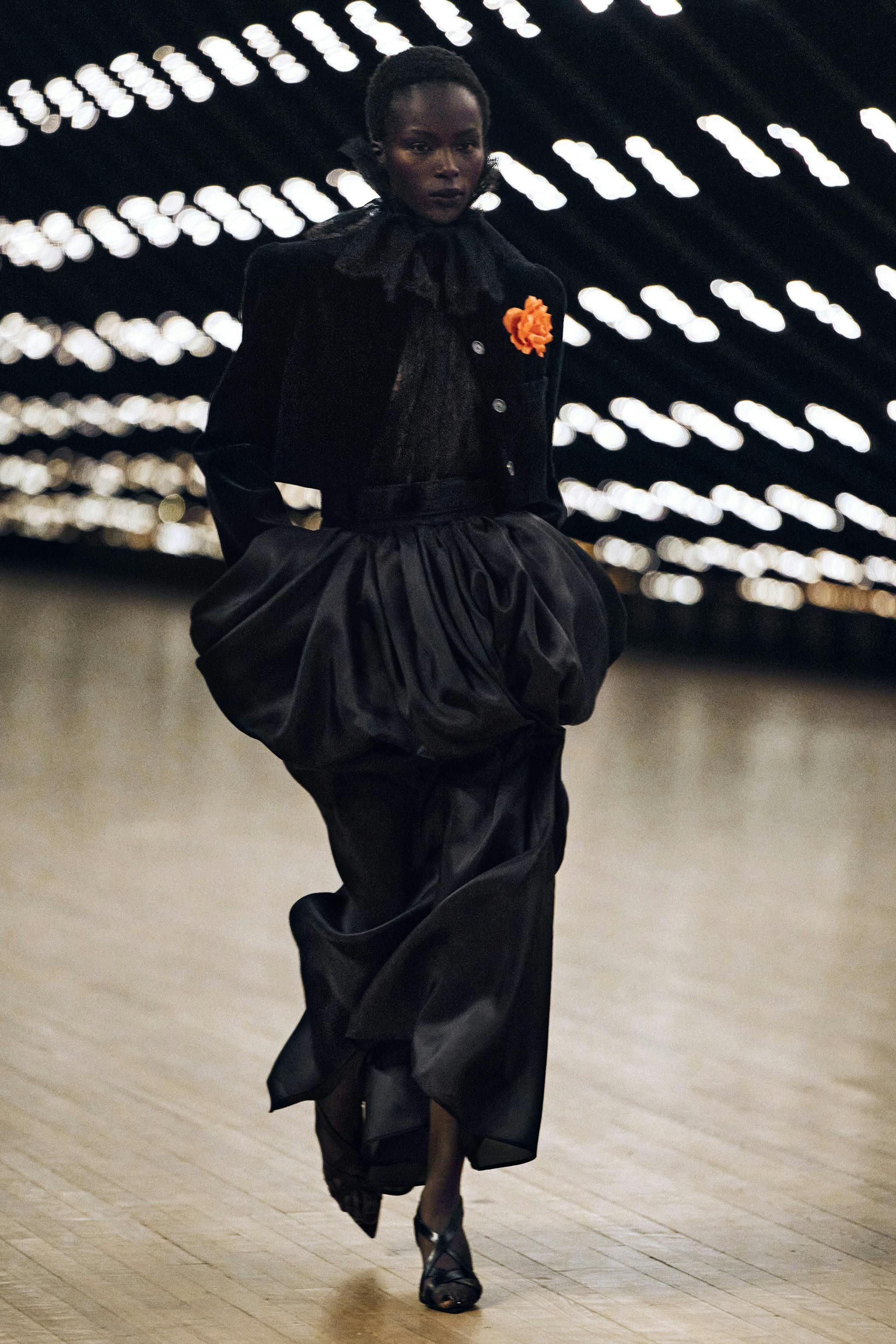 The setting of Cate Holstein’s Autumn/Winter 2026 collection for Khaite — designed by architectural designer and Holstein’s husband, Griffin Frazen, and his team — felt severe. As did the clothes: sharp silhouettes, sleek leather, military-style frogging, cigarette pants, and high heels. Only later in the show did she introduce softness, a sense of dark romance, tempering the tension between hard and soft that the fashion crowd has come to love her for. She lifted the collection from old films she had watched recently, F for Fake, especially. It’s about forgeries and fakers; how we value art and authenticity; who are the arbiters of taste, and what makes things truly authentic, she said. It was a show as visually rich as it was emotionally resonant. And one that once again proved Holstein to be a designer very much in step with her time.